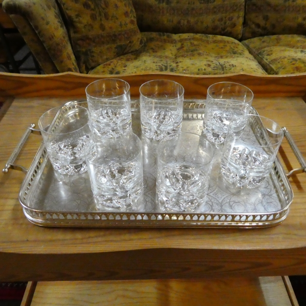 115. Bricka grogg glas Orrefors 7 st