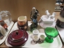 232. Bricka vaser konstglasfiguriner värmeljushållare...
