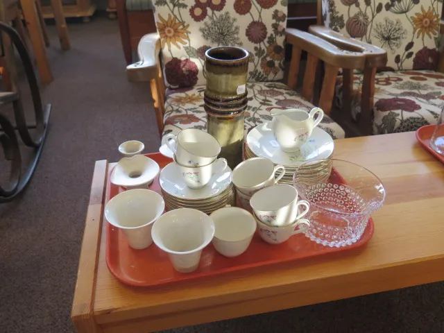 Bricka kaffeservis keramikvas Rörstrand kronskålar mm