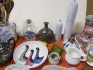 566. Bricka keramik vaser Holmegaard julkaraff mm