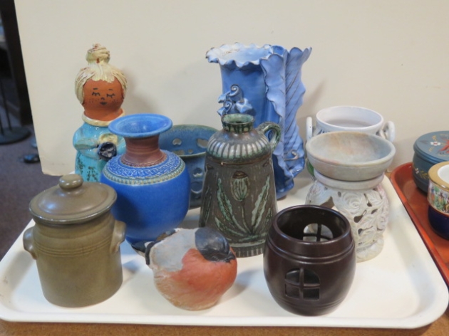 61. Bricka småfiguriner nipperask ljusstakar mortel mm