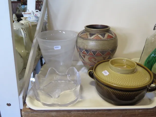 375. Bricka keramikvas karott Norge konstglas vas skål