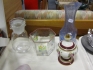 449. Bricka kristallskål ljusstakar porslinskanna mm