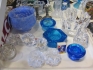 499. Bricka konstglas skålar ljushållare Orrefors mm