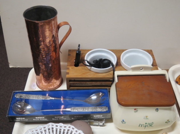 279. Bricka koppar vas mjölvagga salt/peppar salladsbestick