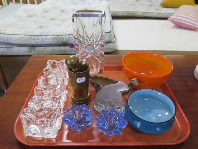 407. Bricka ljuslyktor.. mässingmortel vaser mm