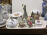 Bricka nipperask figuriner porslinsblommer mm