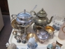 Bricka nysilver sockerskål tekanna mm