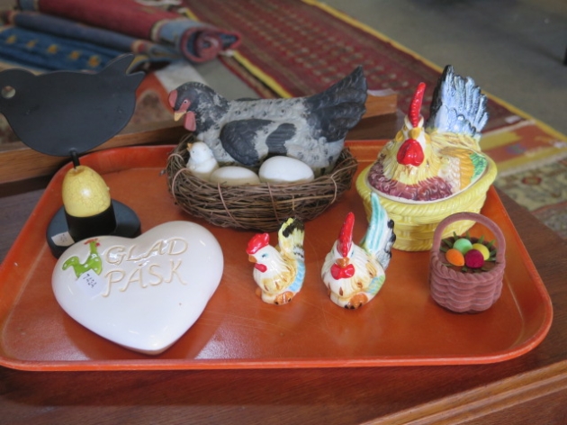 312. Bricka påskprylar hönsfiguriner