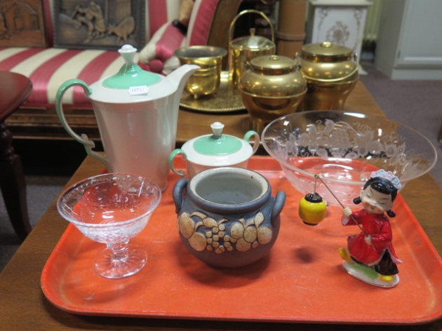302. Bricka porslinskanna R krus japansk figurin mm