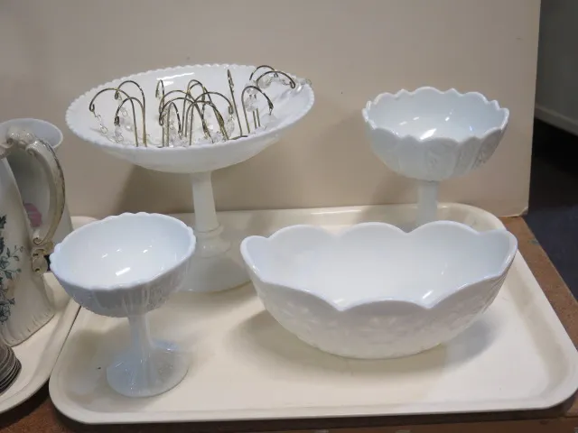 59. Bricka vintage opalinglas jardinär fotskålar