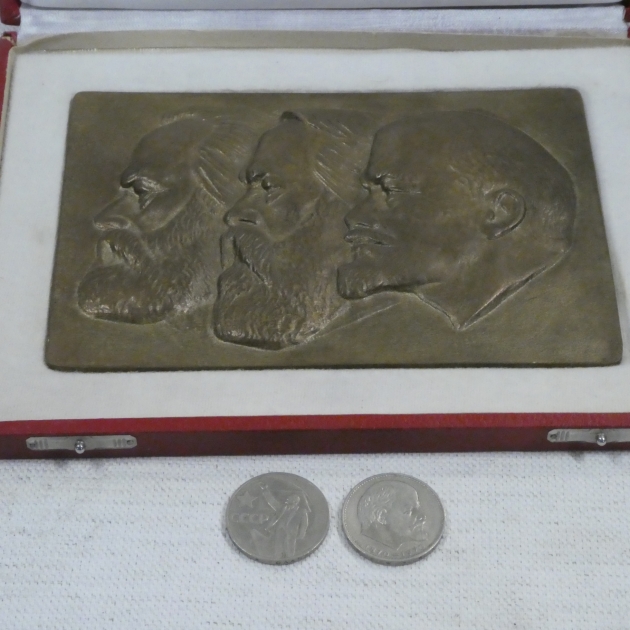 274. Bronsplakett Marx Engels och Lenin l:20 cm / 2 st minnesmynt 1 rubel