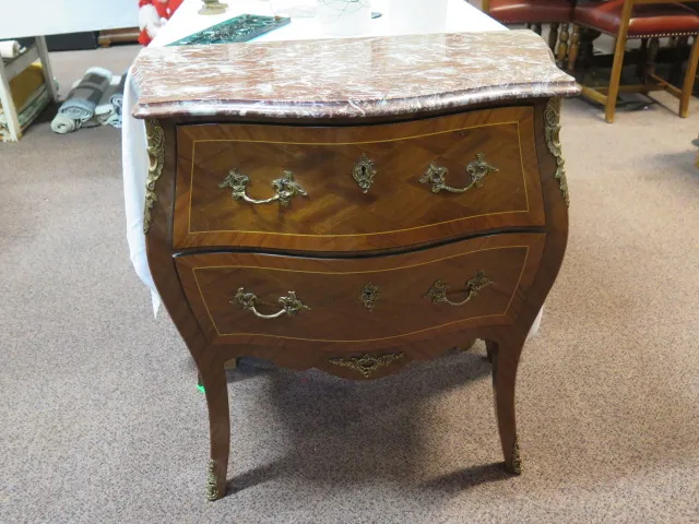 249. Bukbyrå mahogny nyrokoko 2 lådor stenskiva b:74 cm