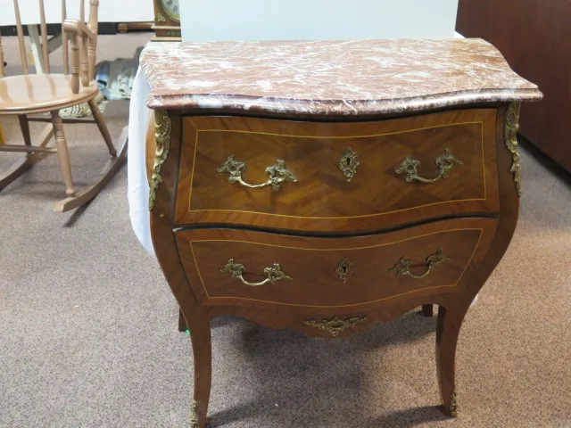 Bukbyrå mahogny nyrokoko 2 lådor stenskiva b:74 cm