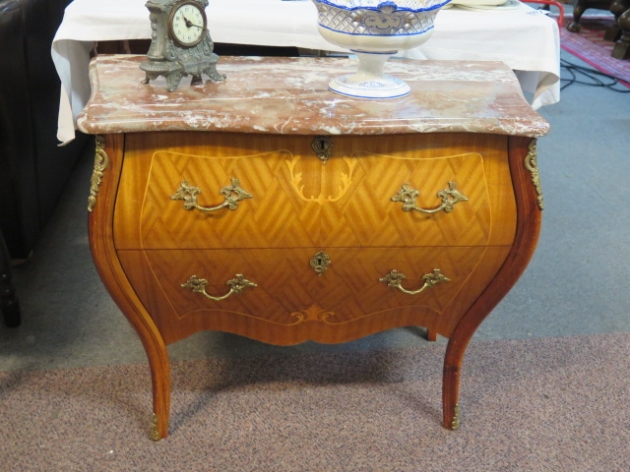 264. Bukbyrå mahogny nyrokoko 2 lådor stenskiva b:83 cm