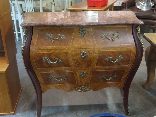 Bukbyrå mahogny nyrokoko 3 lådor stenskiva b:92cm