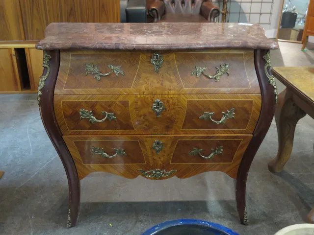 Bukbyrå mahogny nyrokoko 3 lådor stenskiva b:92cm