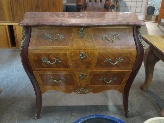 470. Bukbyrå mahogny nyrokoko 3 lådor stenskiva b:92cm