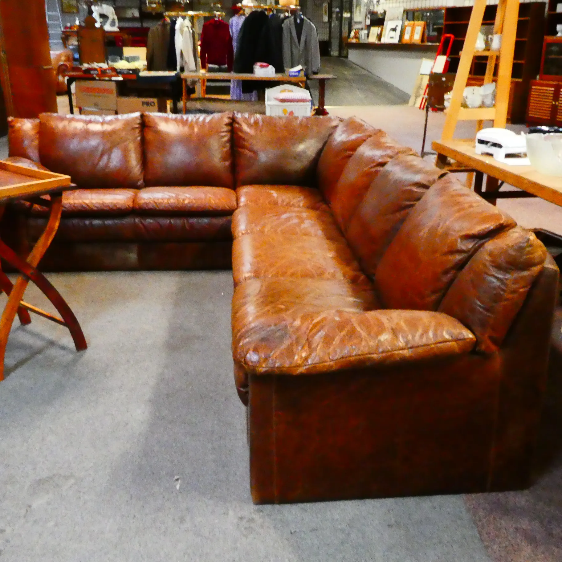 Charmig retro skinnsoffa hörnmodell 260x300 cm