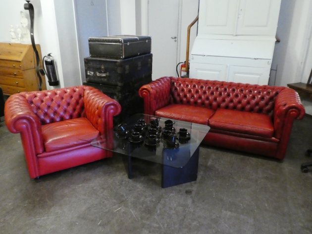 32. Chesterfield soffgrupp 2+1.. soffa l-185 cm..
