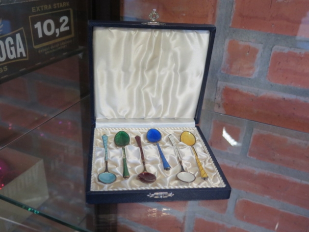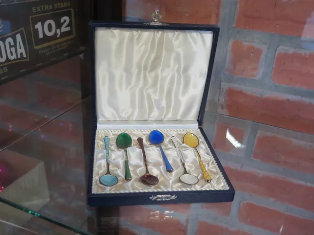 60. Emaljerade kaffeskedar i etui sterling silver Egon Lauritsen Danmark