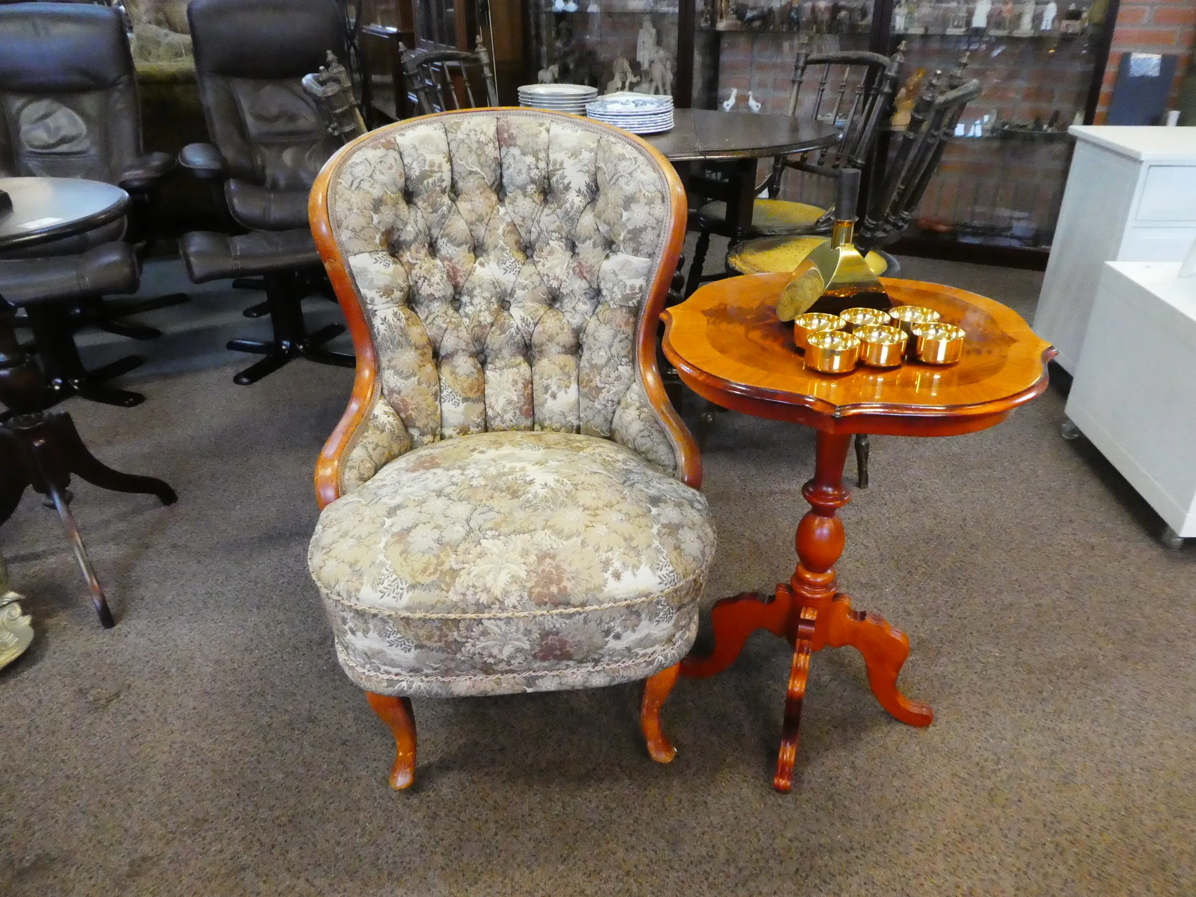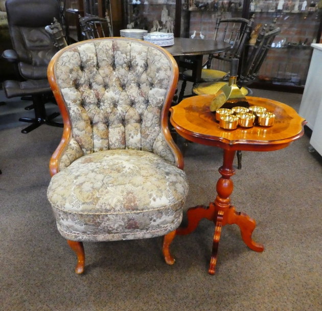 57. Emma fåtölj/ pelarbord mahogny