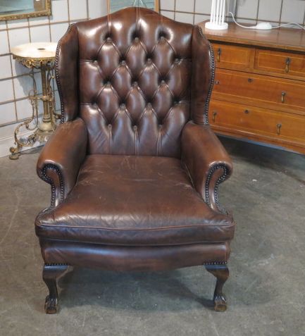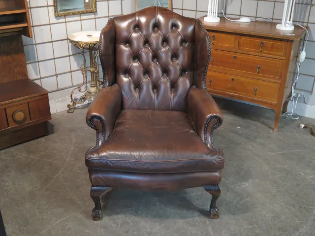 Engelsk öronlappsfåtölj i skinn b:75 cm