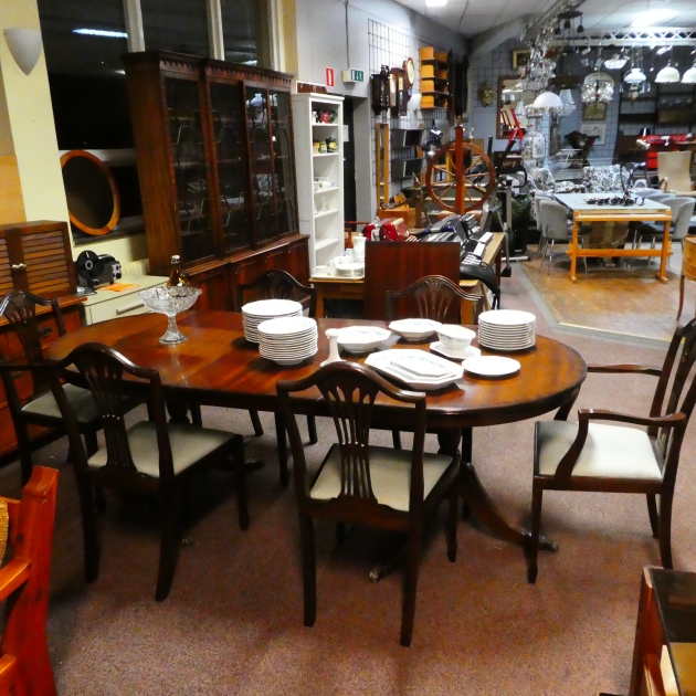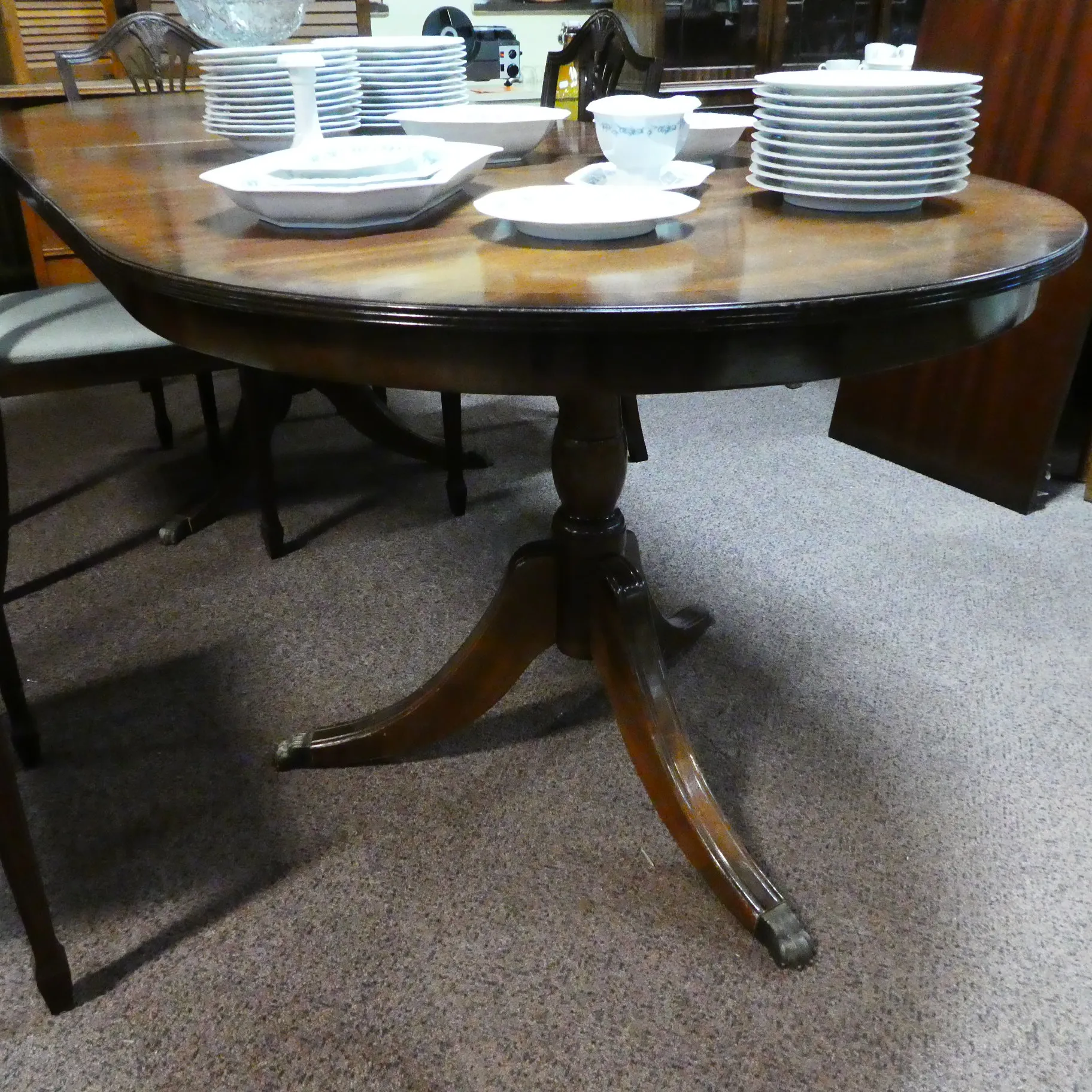 89. Engelsk matsalsgrupp bord mahogney 2 ilägg 4 stolar 2 karmstolar