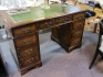 Engelskt 9 lådigt skrivbord skinninlagd skiva l:120 cm