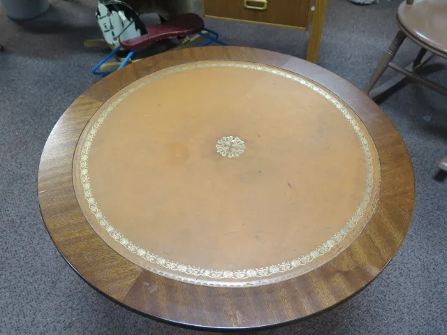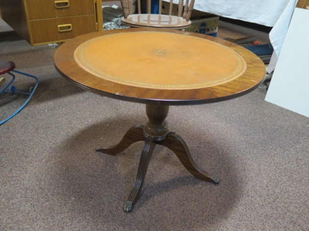 Engelskt pelarbord mahogny skinninläggning d:75 cm