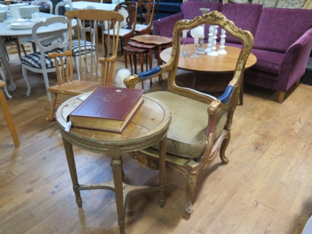 Förgylld antik karmstol /gustavianskt lampbord