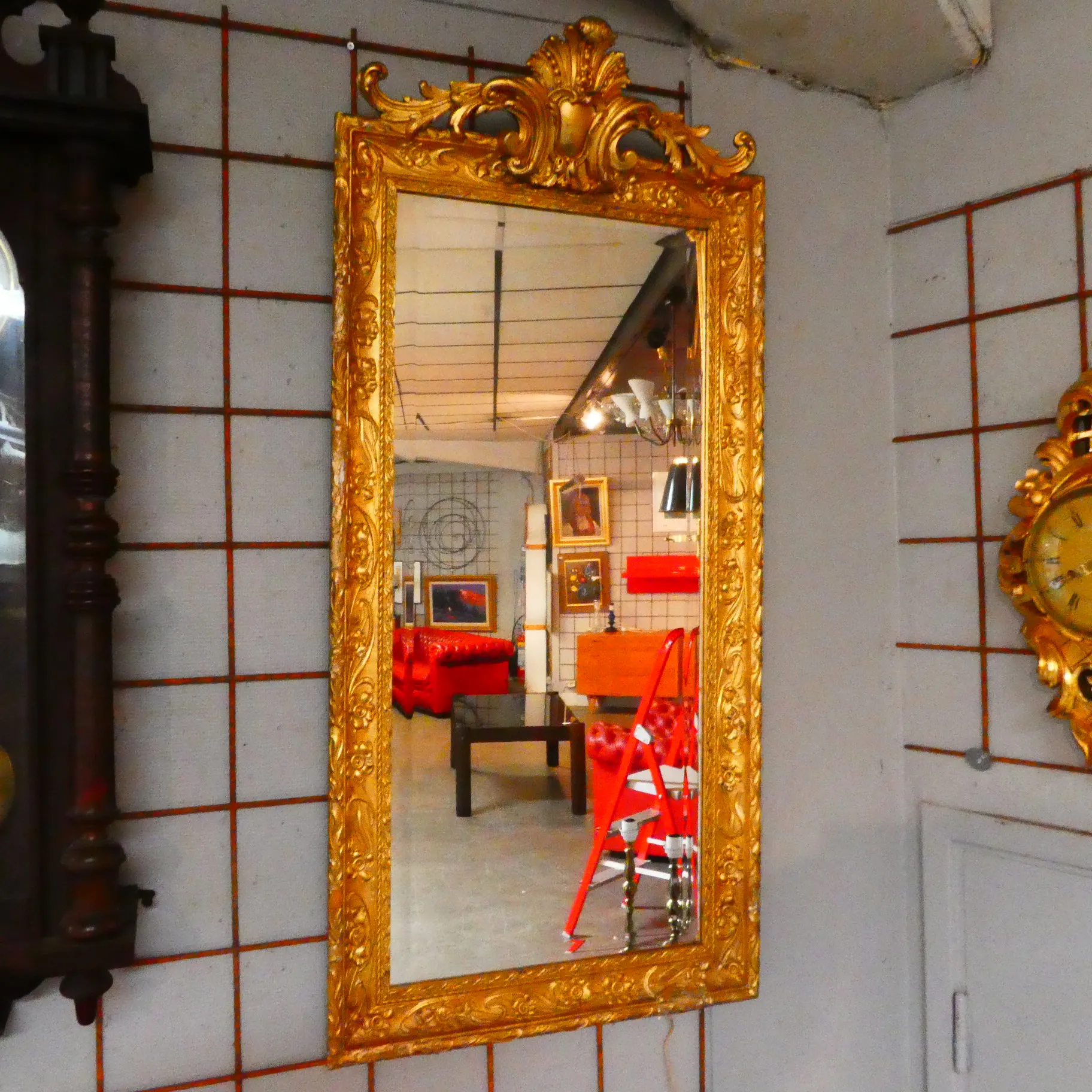 Förgylld fasettslipad väggspegel b:56 cm