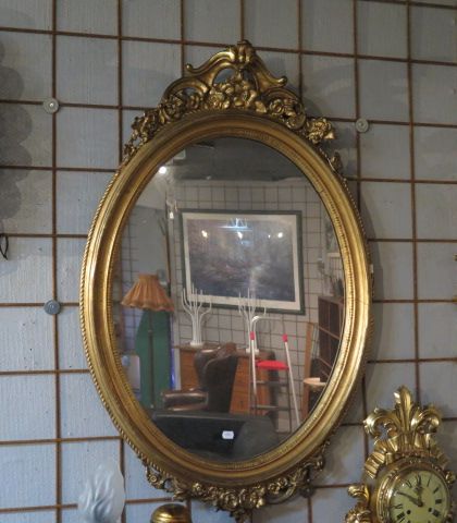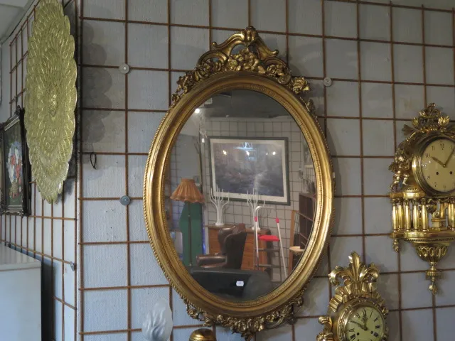 419. Förgylld oval väggspegel 70x110 cm