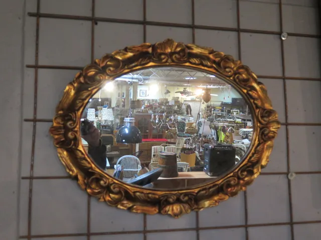 Förgylld oval väggspegel b:64 cm