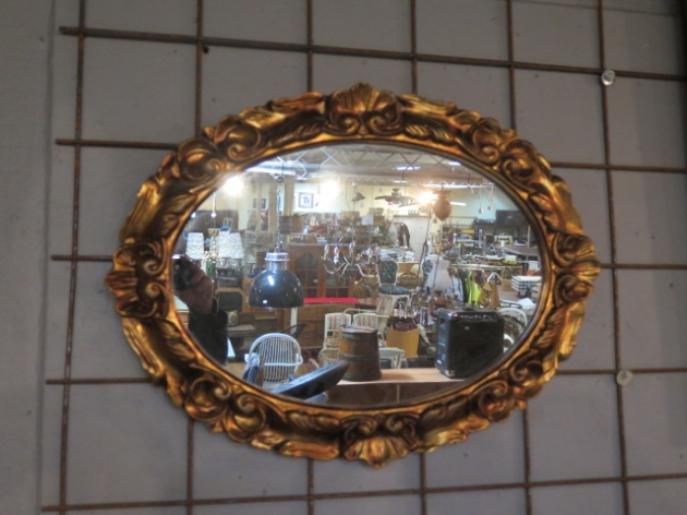422. Förgylld oval väggspegel b:64 cm