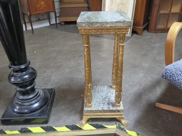 Förgylld piedestal m stenskiva