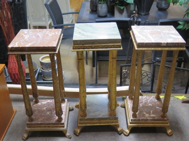 582. Förgyllda piedestaler m marmorskiva 3 st