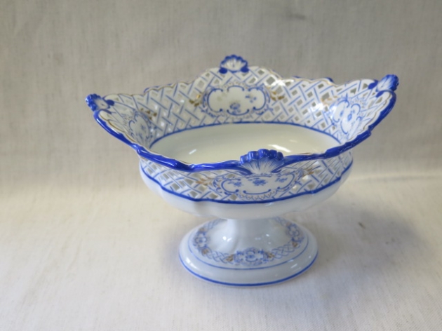 217. Fotskål blå rokoko estetik Meissen h:18 cm