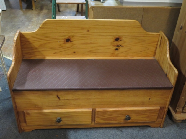 247. Furubänk med lock 2 lådor l:110 cm