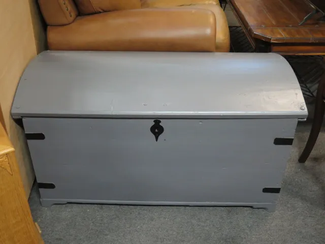 Gråmålad träkista m välvt lock l:107 cm