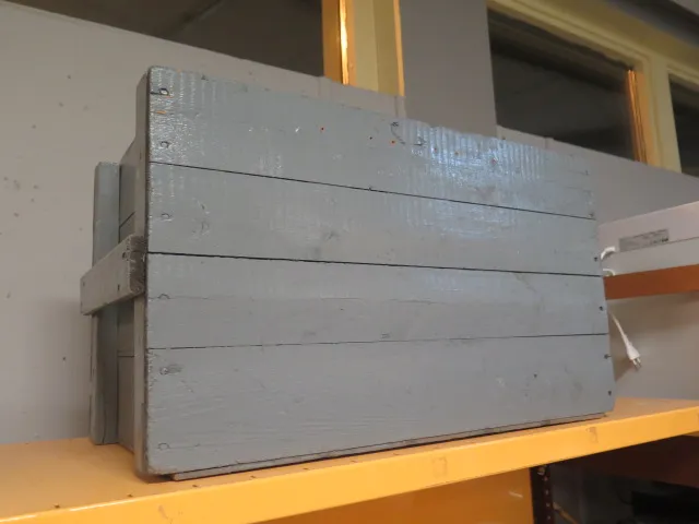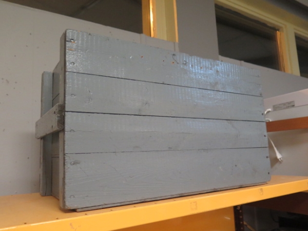 829. Grönmålad trälåda m handtag.. l-60 cm