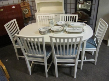 Gustaviansk matsalsgrupp bord 2 ilägg 6 stolar