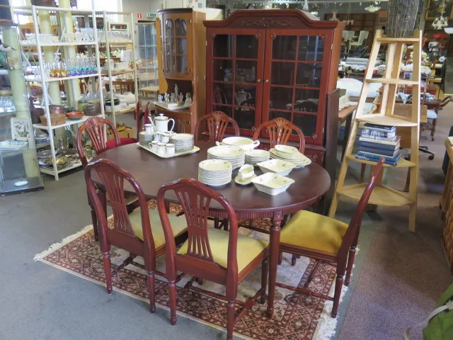 Gustaviansk matsalsgrupp porslinskåp bord 2 ilägg 6 stolar