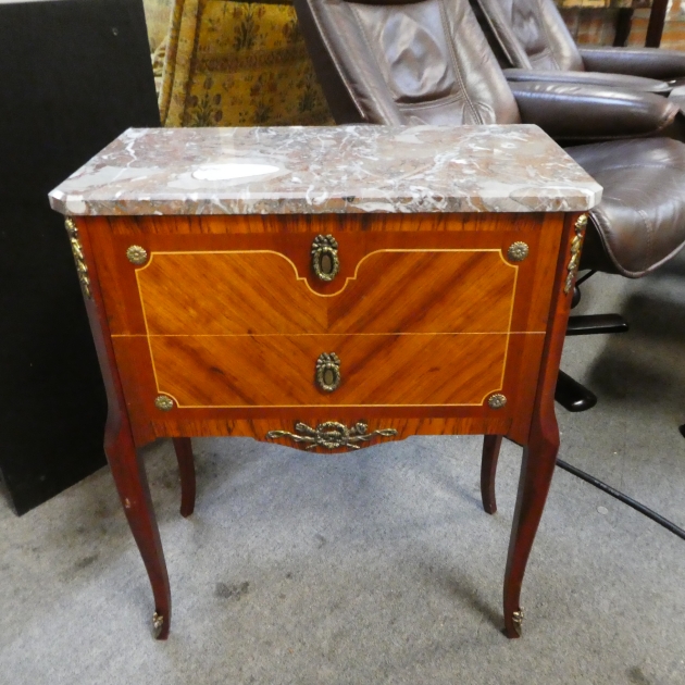Gustaviansk stilbyrå mahogney marmorskiva 2 lådor intarsiainläggningar b:50 cm