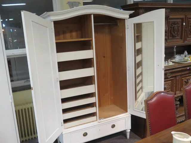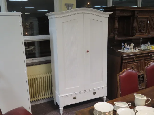 283. Gustavianskt vitmålat klädskåp välvt krön 108x48x205 cm