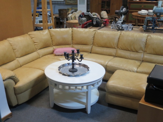 Hörnsoffa skinn..Italsofa + fotpall 220x270 cm