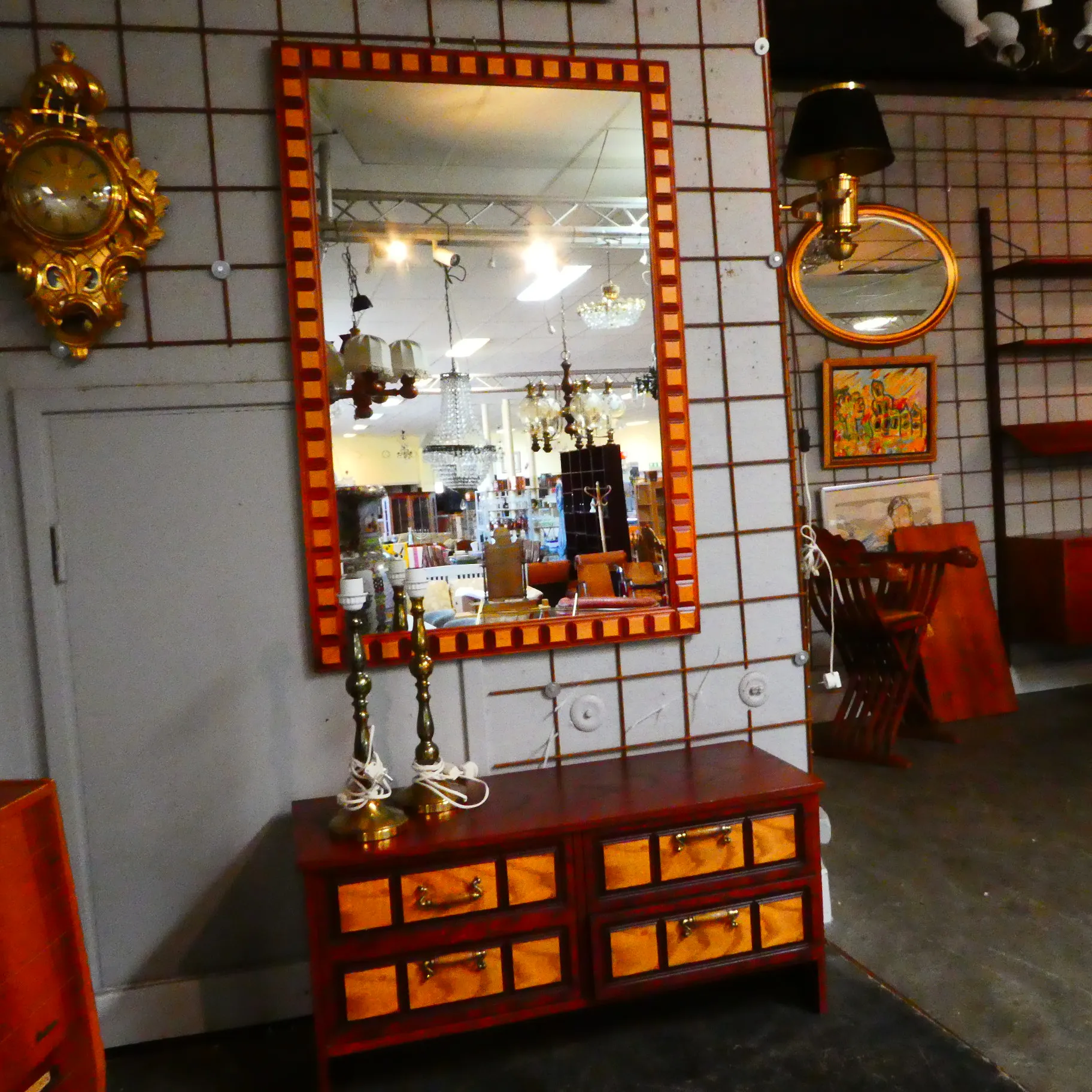 Hallmöbel byrå 4 lådor väggspegel teak 1970-tal b:80 cm