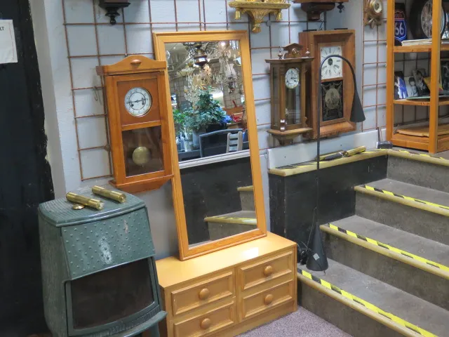 501. Hallmöbel furu byrå 4 lådor väggspegel