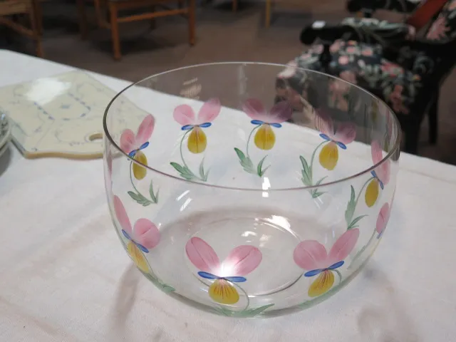 Handmålad skål konstglas d:23 cm