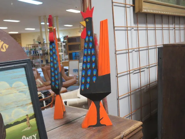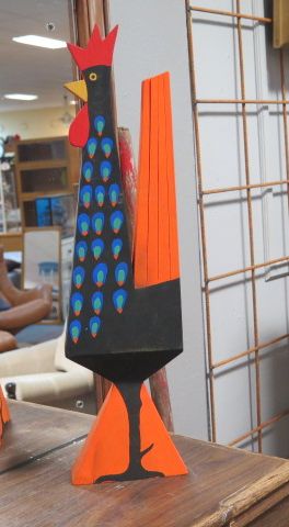 Handmålad tuppfigurin trä h: 56 cm